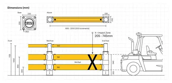 Die Atlas Double Traffic Barrier +Sicherheitsbarriere ist so konzipiert, dass sie dem Aufprall von Lagertechnikgeräten in stark frequentierten Bereichen standhält.