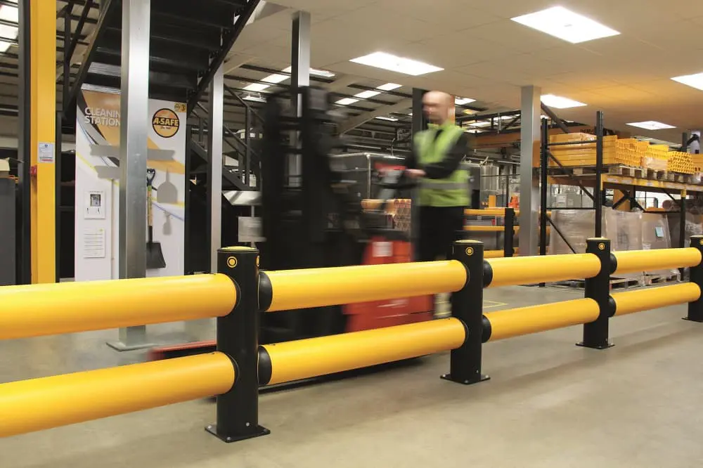 DieiFlex Double Traffic Barrier Sicherheitsbarriere wurde entwickelt, um Mauerwerk und Metallkonstruktionen, Maschinen und Anlagen vor Schäden zu schützen, die durch den Aufprall von Lagertechnikgeräten bei intensiver Nutzung verursacht werden.