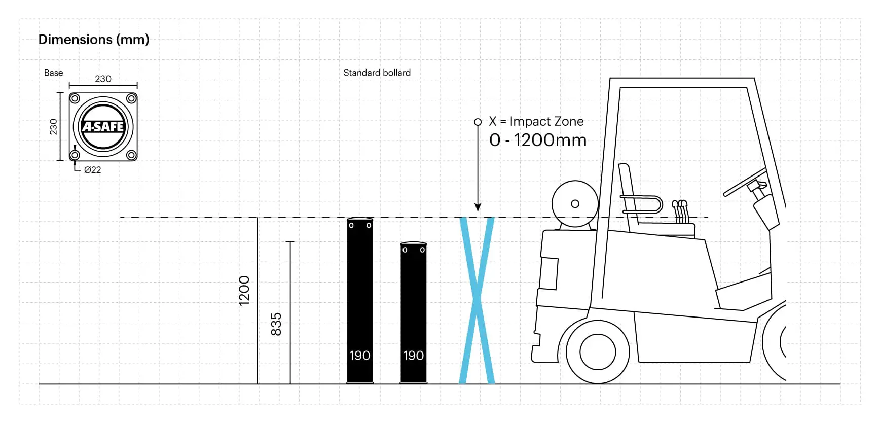 Verwenden SieiFlex Pollard Gefrierschrank-Säulen zum Schutz von Türen und Eingängen in Umgebungen mit Temperaturen unter dem Gefrierpunkt. Sie können auch zum Schutz von Gebäudestrukturen, Maschinen oder Industrieanlagen verwendet werden, wenn ein einfacher Zugang für Personen erforderlich ist. Die iFlex Poller-Säulen sind für den Einsatz in Produktions- und Lagerhallen mit geringem bis mittlerem Verkehrsaufkommen konzipiert.