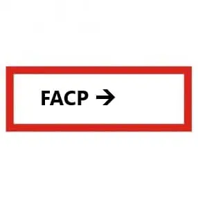 AT-SB46.FN81.074 | Brandschutzkennzeichnung, ''FACP'' mit Pfeil – Nachleuchtende Folie, 210×74 mm |
