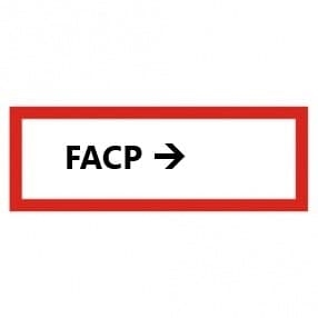 AT-SB46.FN81.074 | Brandschutzkennzeichnung, ''FACP'' mit Pfeil – Nachleuchtende Folie, 210×74 mm |