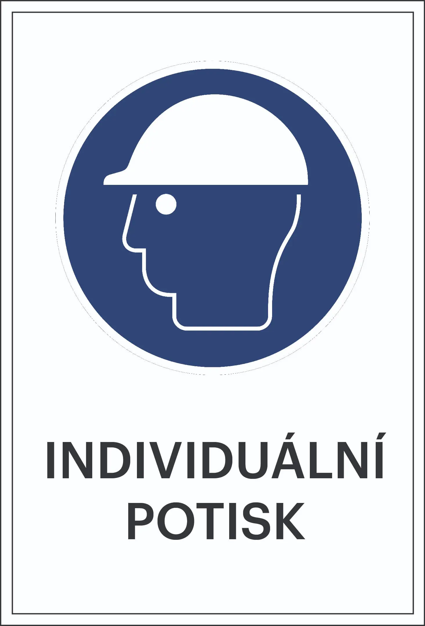 AT-SGK03.FAB99.300 | Sicherheitsbefehlkennzeichnung, Schutzhelm benutzen, individueller Text – Folie, 200×300 mm |