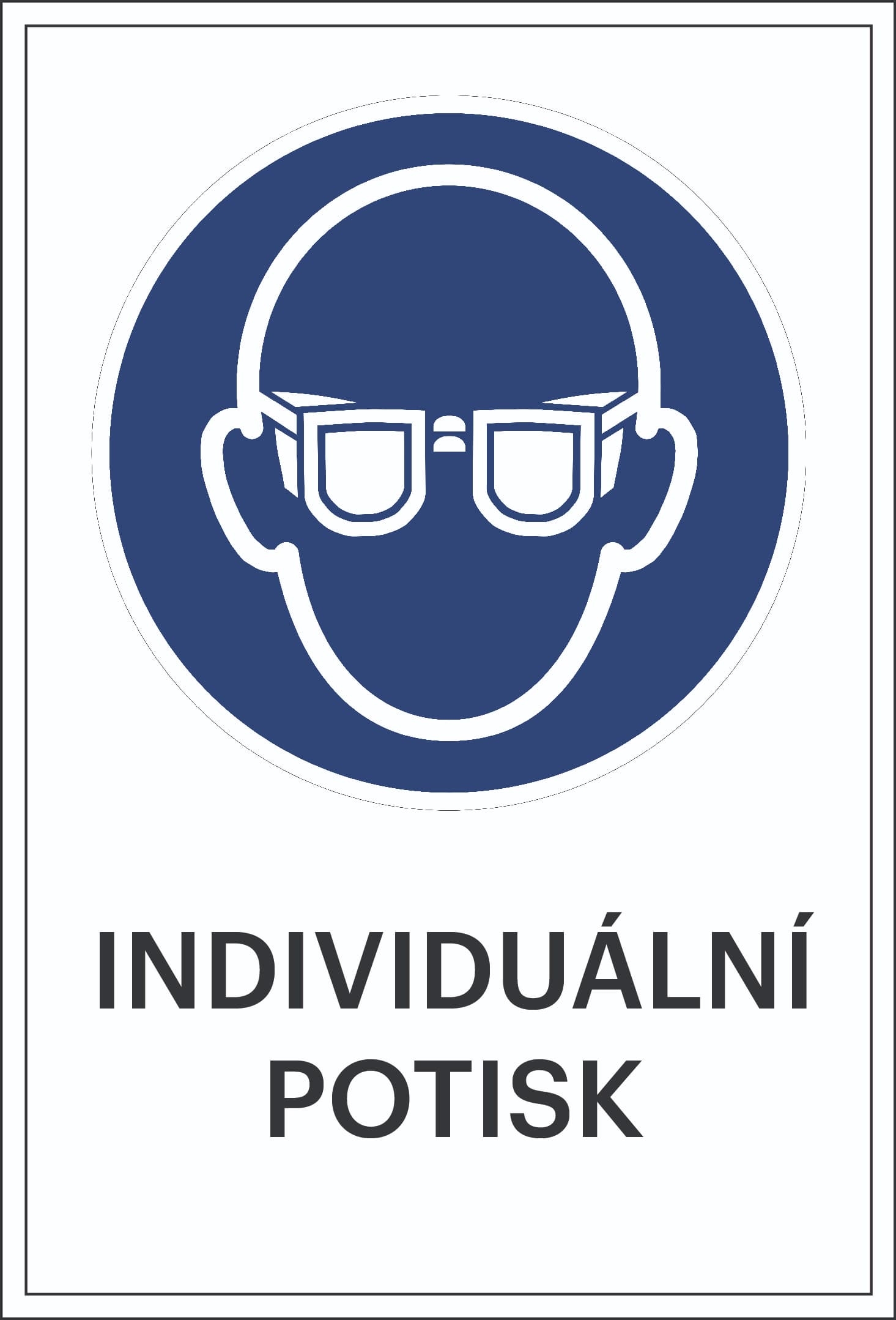 AT-SGK01.FAB99.150 | Sicherheitsbefehlkennzeichnung, Augenschutz benutzen, individueller Text – Folie, 100×150 mm |