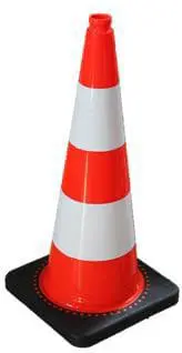 Der Verkehrsleitkegel besteht aus hochelastischem Polyvinylchlorid (PVC) mit einem Fuß aus recyceltem Gummi.