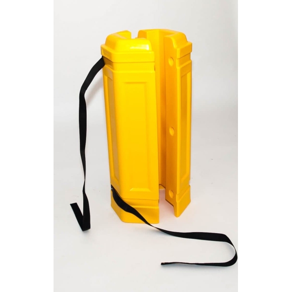 Der Schutz besteht aus flexiblem, hochfestem Polyethylen (LLPE) und ist für Säulen mit den Maßen 100×100 mm geeignet. Die Montage erfolgt einfach und ohne zusätzliche Befestigungsmittel. Die Seiten werden mit zwei beiliegenden Klettverschlussbändern fixiert.