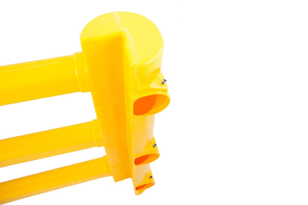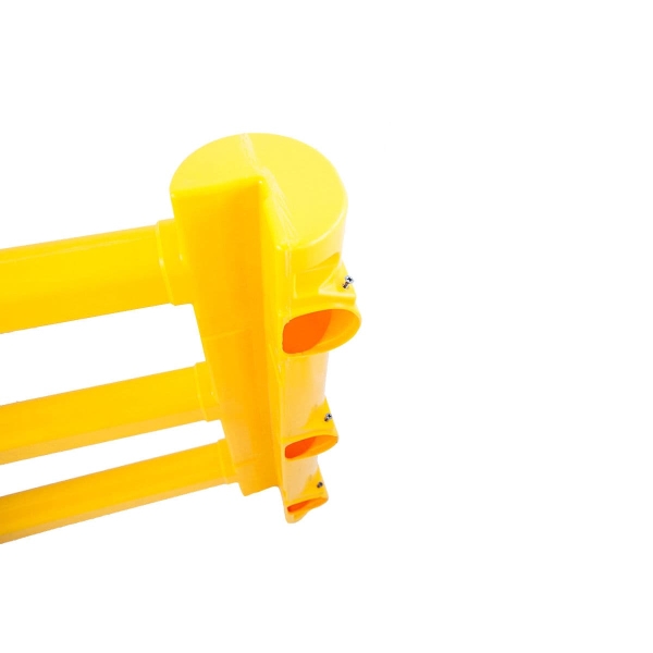 Die Installation ist einfach und schnell, ohne Bohren oder Befestigung am Boden. Die leuchtend gelbe Farbe sorgt für maximale Sichtbarkeit; auf Wunsch sind reflektierende Streifen verfügbar.