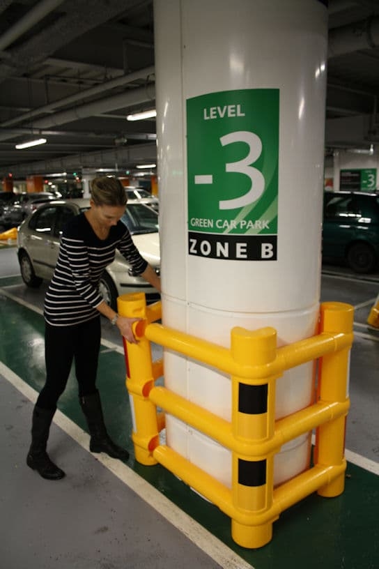 Hergestellt aus flexiblem, hochbelastbarem Polyethylen, passt der vierteilige modulare Schutz auf Säulen bis 700 mm Breite. Die einzelnen Module lassen sich flexibel auf die gewünschte Breite einstellen.