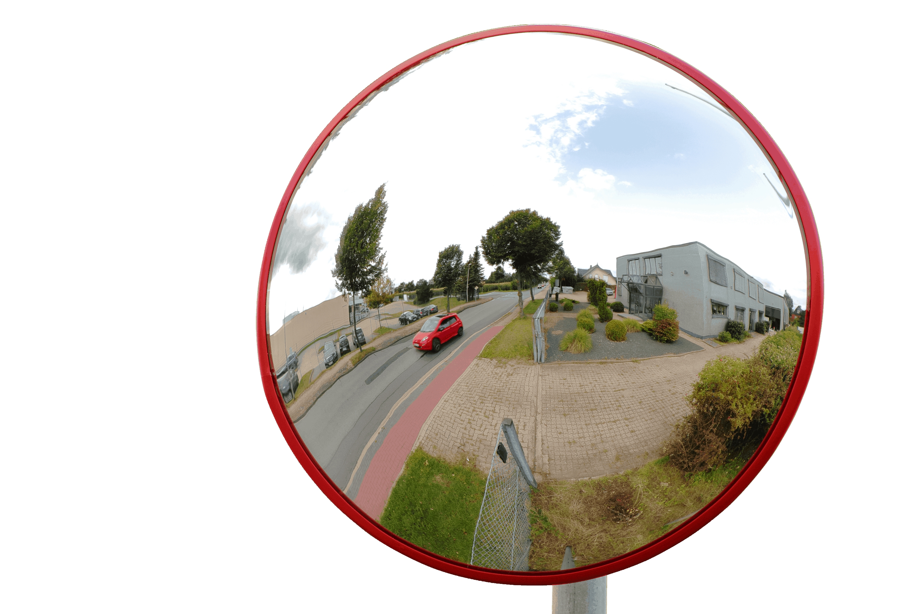 Dieses konvexe Profil ist eine ideale Lösung für Parkhäuser, Unterführungen, Tunnel oder zur Erweiterung der Sicht für Fußgänger und Motorräder. Mit dem roten Rahmen ist es sehr gut sichtbar und minimiert Unfälle, vor allem bei schlechten Wetterbedingungen. Die Widerstandsfähigkeit gegen Winde von 117 km/h wurde ebenfalls getestet.