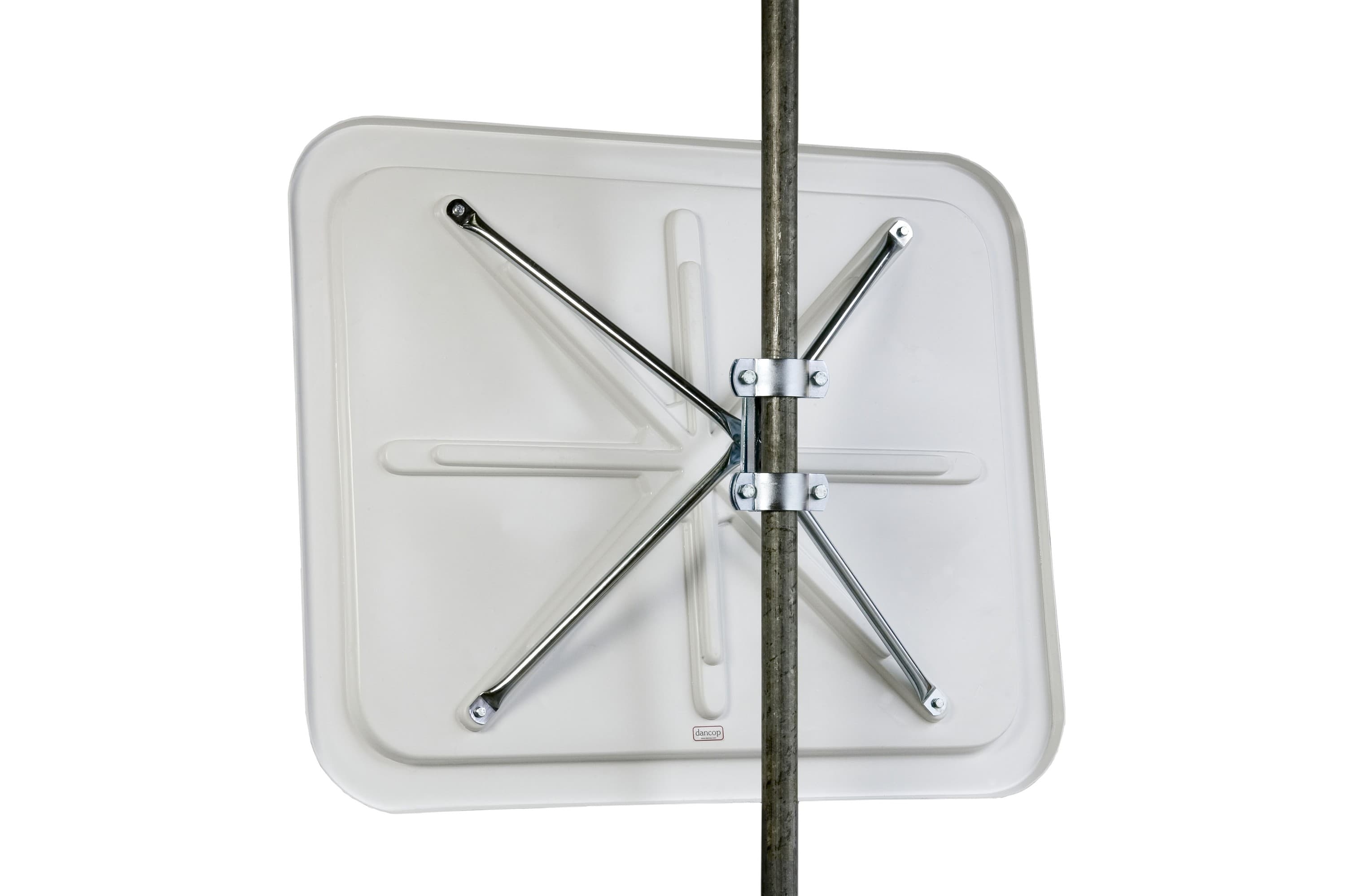 Die Montage erfolgt über eine Vier-Punkt-Befestigung mit Kugelgelenk – passend für Wände und Pfosten mit einem Durchmesser von 500–850 mm.