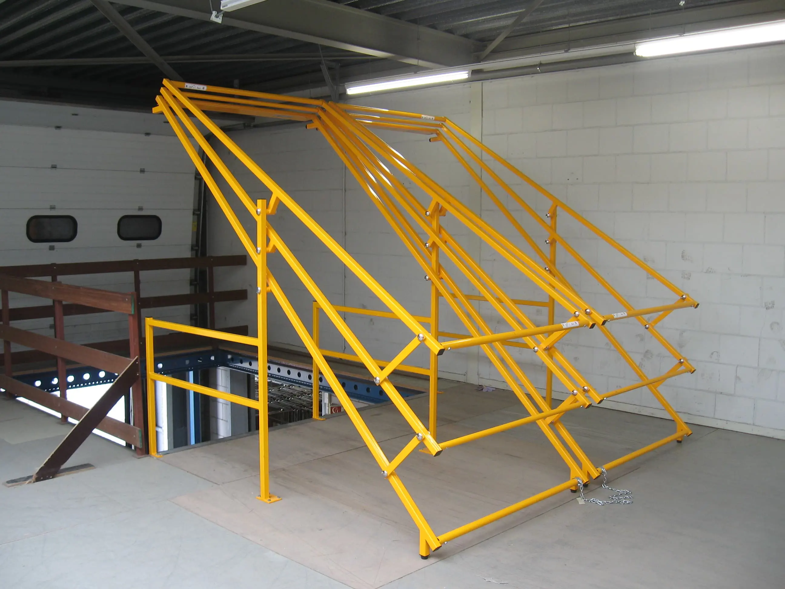 Die drehbare Sicherheitsschleuse Vario ist eine manuell bedienbare Schutzvorrichtung, die Bediener, Paletten und Gegenstände an Ladebereichen zuverlässig schützt. Sie lässt sich einfach und sicher bedienen und sorgt dafür, dass Vertiefungen jederzeit abgedeckt bleiben.