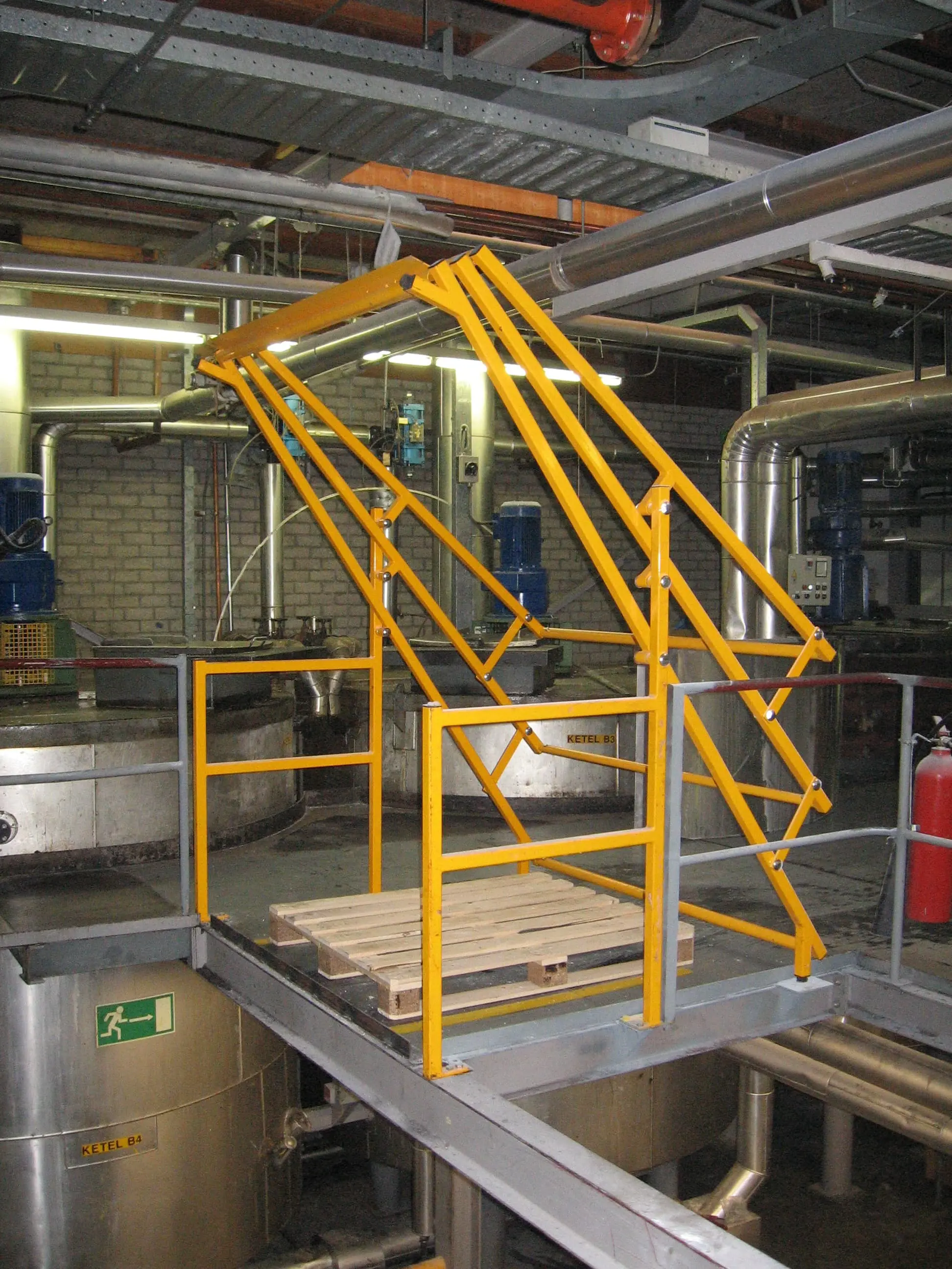 Die Schleusen bestehen aus Stahl in RAL 1028 Gelb und bieten eine breite Auswahl an Standardgrößen, die für unterschiedliche Paletten und Bauanforderungen geeignet sind.