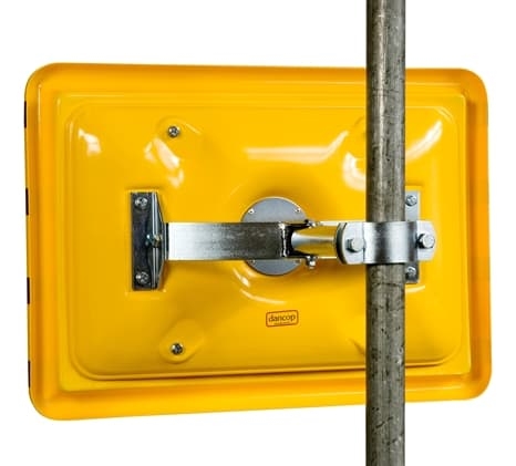 Die Zwei-Punkt-Befestigung mit Kugelgelenk für die Wandmontage und Pfosten 50-85 mm Ø ist eine perfekte Lösung für Industriespiegel.