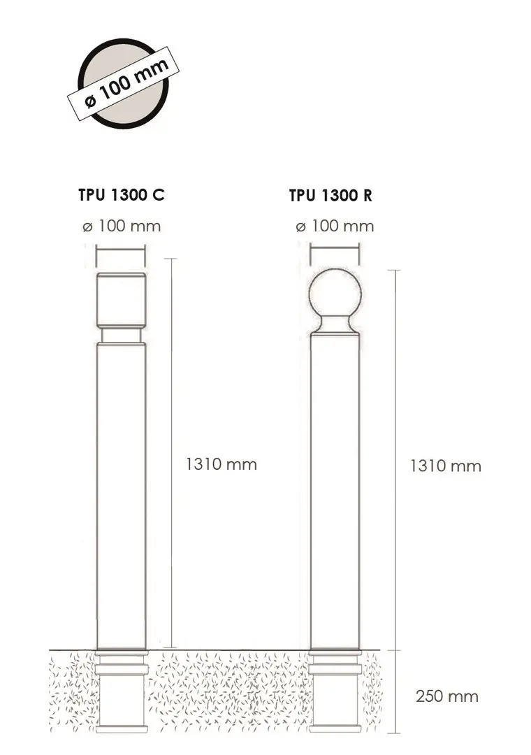 VI-TPU1300CAB | Flexibler Pfosten zum Einbetonieren, H.1560 (1310) mm, D.100 mm – grau |