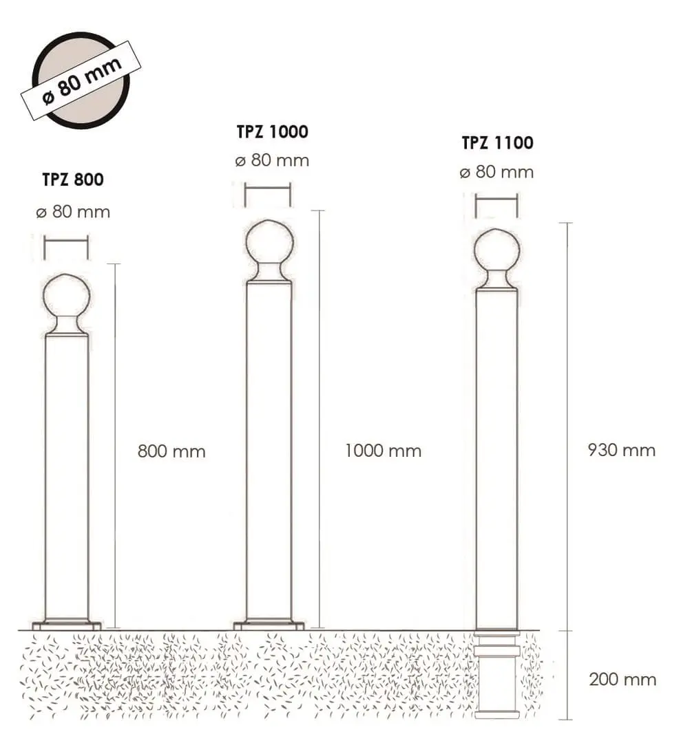 VI-TPZ800CN | Flexibler Pfosten, H.800 mm, D.80 mm – schwarz |