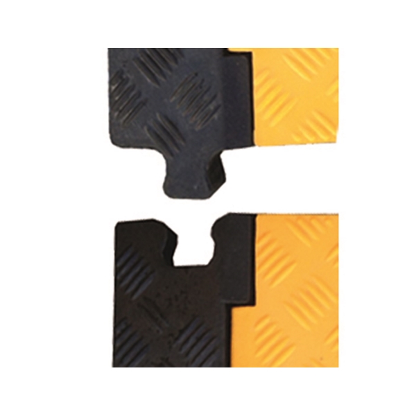 Der Kabelübergang schützt vor unbeabsichtigtem Stolpern und ermöglicht das sichere Überqueren von schweren Geräten. Er bietet mechanischen Schutz für Kabel und Schläuche in Lagern, Produktionsstätten, auf Straßen, Baustellen oder bei Veranstaltungen.