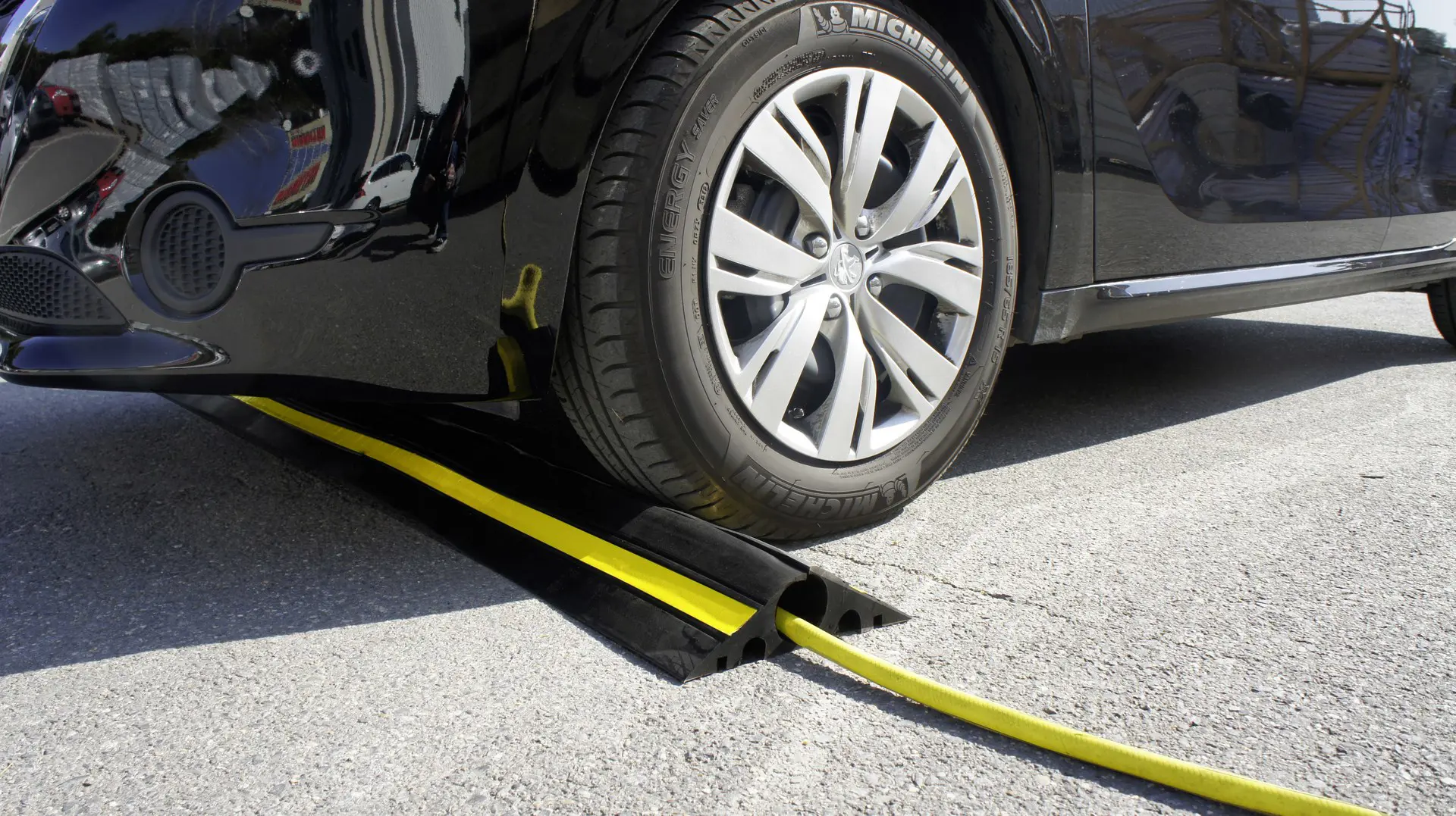 Die Kabelbrücke schützt Kabel und Schläuche mechanisch an Orten mit schwerem Gerät, z. B. in Lagern, Produktionsstätten, auf Straßen, Baustellen und Veranstaltungen.