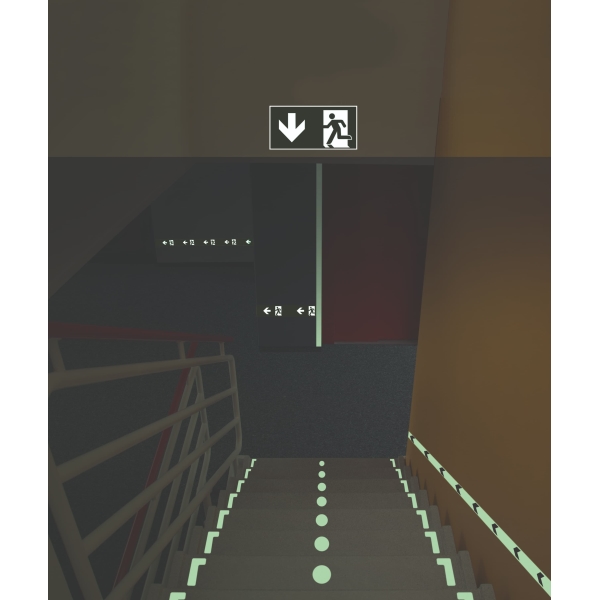 Nachleuchtende Bänder und Markierungen an Wänden und Böden sind die ideale Wahl für die Kennzeichnung von Notausgängen beim Stromausfall.