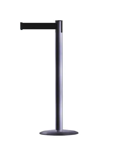 TE-889U-MGYBK | Mobiler Absperrpfosten Advance mit Universalfuß, grau – schwarzes Band 3,65 m |
