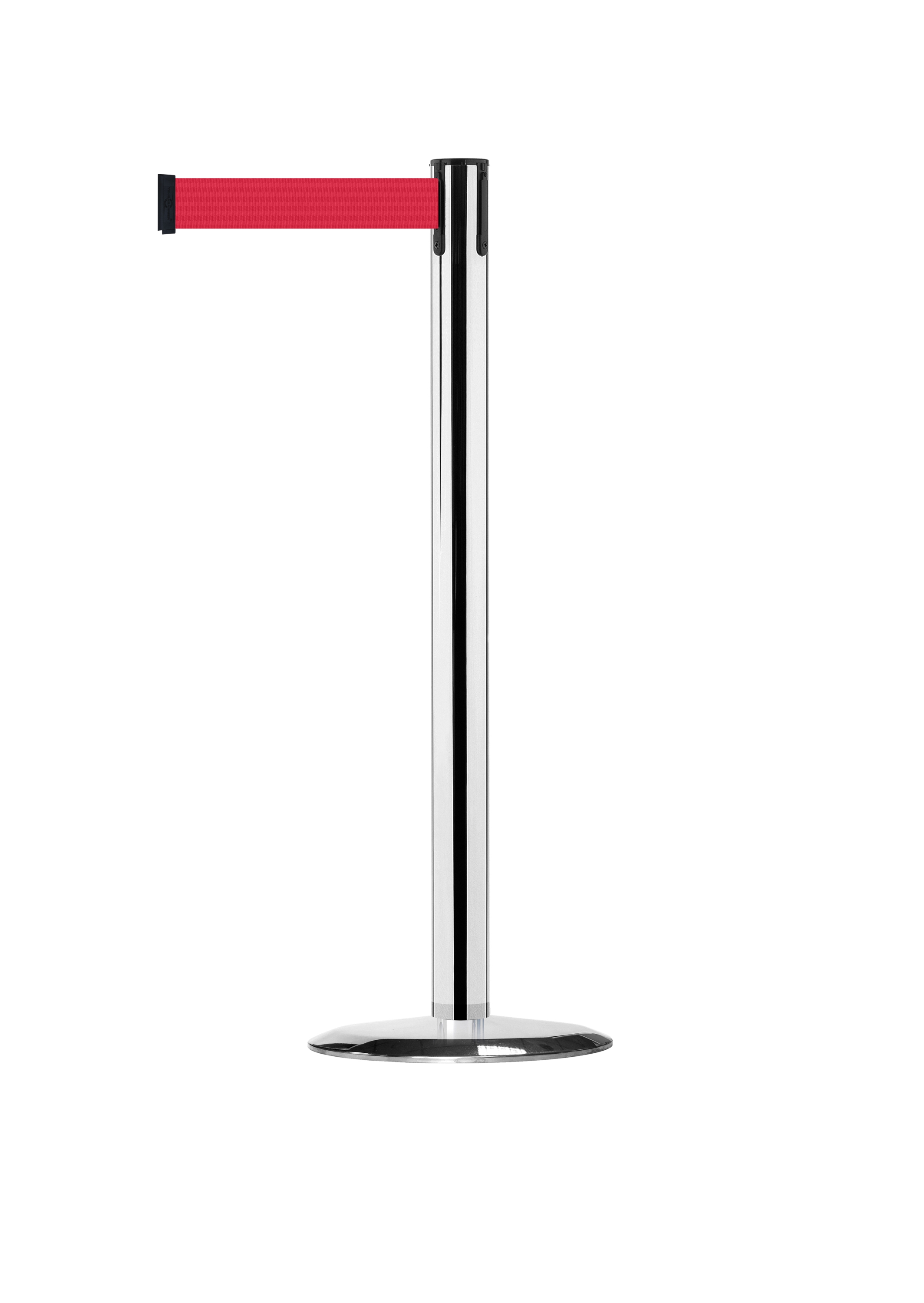 Advance mobiler Absperrpfosten mit Universalfuß, Chrom poliert – blaues Band 2,3 m