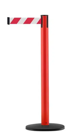 TE-887B-MRDRW | Mobiler Absperrpfosten mit Basic ABS Sockel, rot – rot-weißes Band 3,65 m |