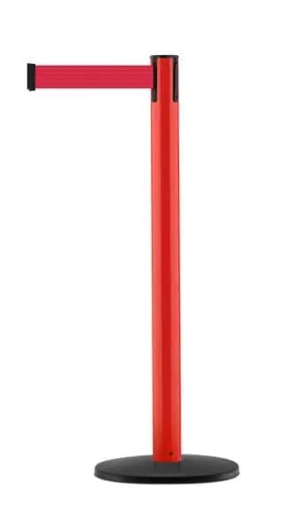 TE-887B-MRDRD | Mobiler Absperrpfosten mit Basic ABS Sockel, rot – rotes Band 3,65 m |