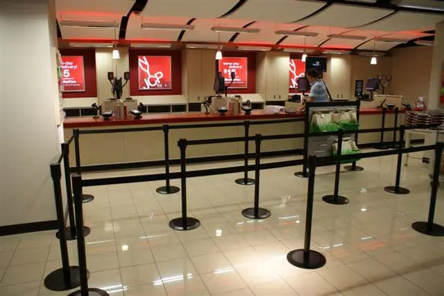 Die Bandenden der Kassetten können mit dem Band an den mobilen Pfosten befestigt werden. Die Bänderkönnen mit Ihrem Logo oder einem beliebigen Motiv bedruckt werden.