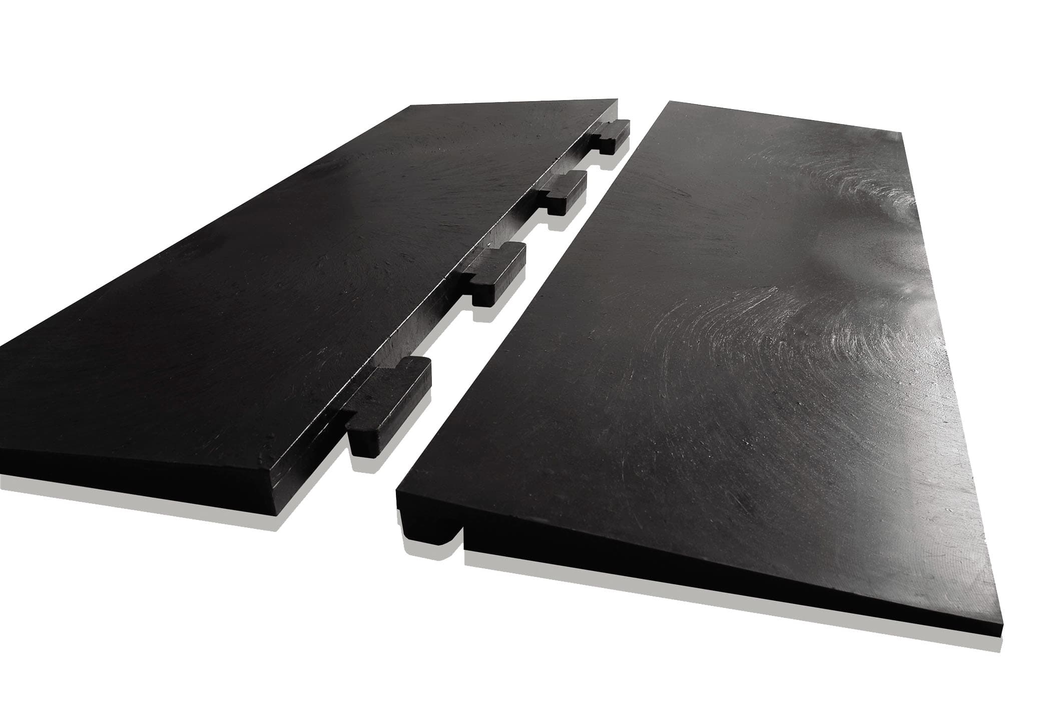 Anfahrleiste–Ecke StandardRecycled aus recyceltem PVC – 445×150×3–15 mm, glatte Oberfläche, anthrazit