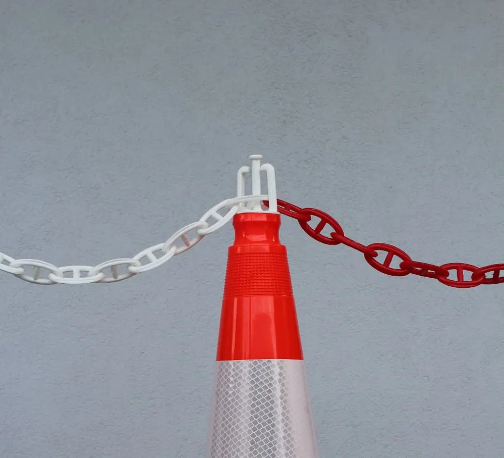 Empfohlen wird die Kombination mit Verkehrsleitkegeln, die über einen Fuß aus recyceltem Gummi verfügen und dadurch besonders stabil stehen.