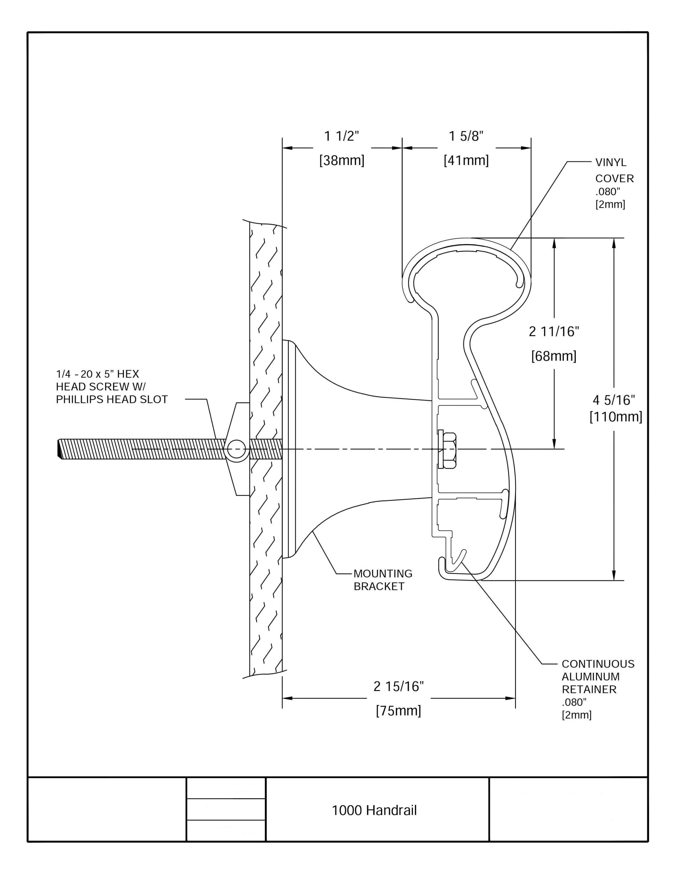 Wandgriff Handrail 910 – PVC, Standard-RAL-Farben, 35 mm × 3,66 m, inkl. 7 Wandkonsolen