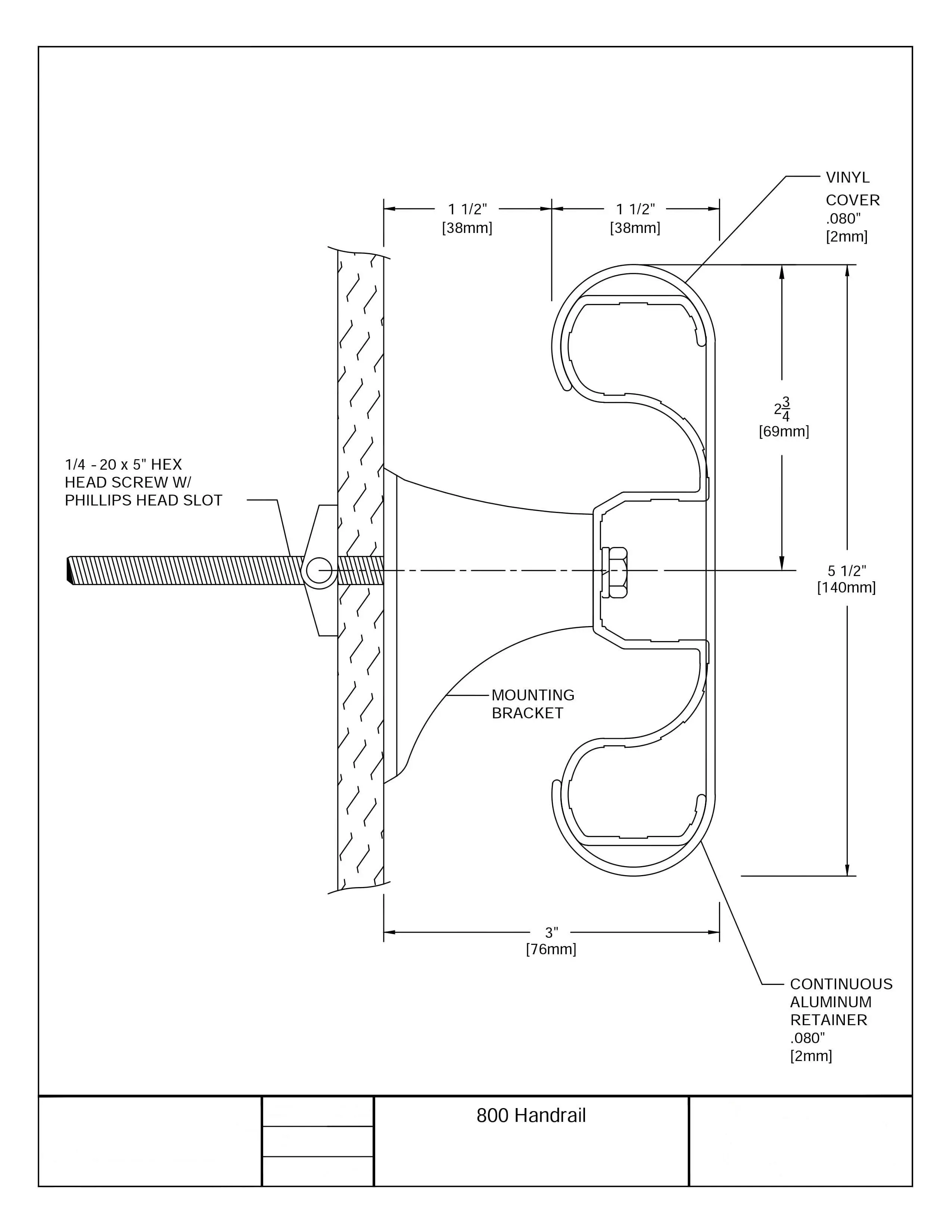 Wandgriff Handrail 940 – PVC, Standard-RAL-Farben, 40 mm × 3,66 m, inkl. 7 Wandkonsolen