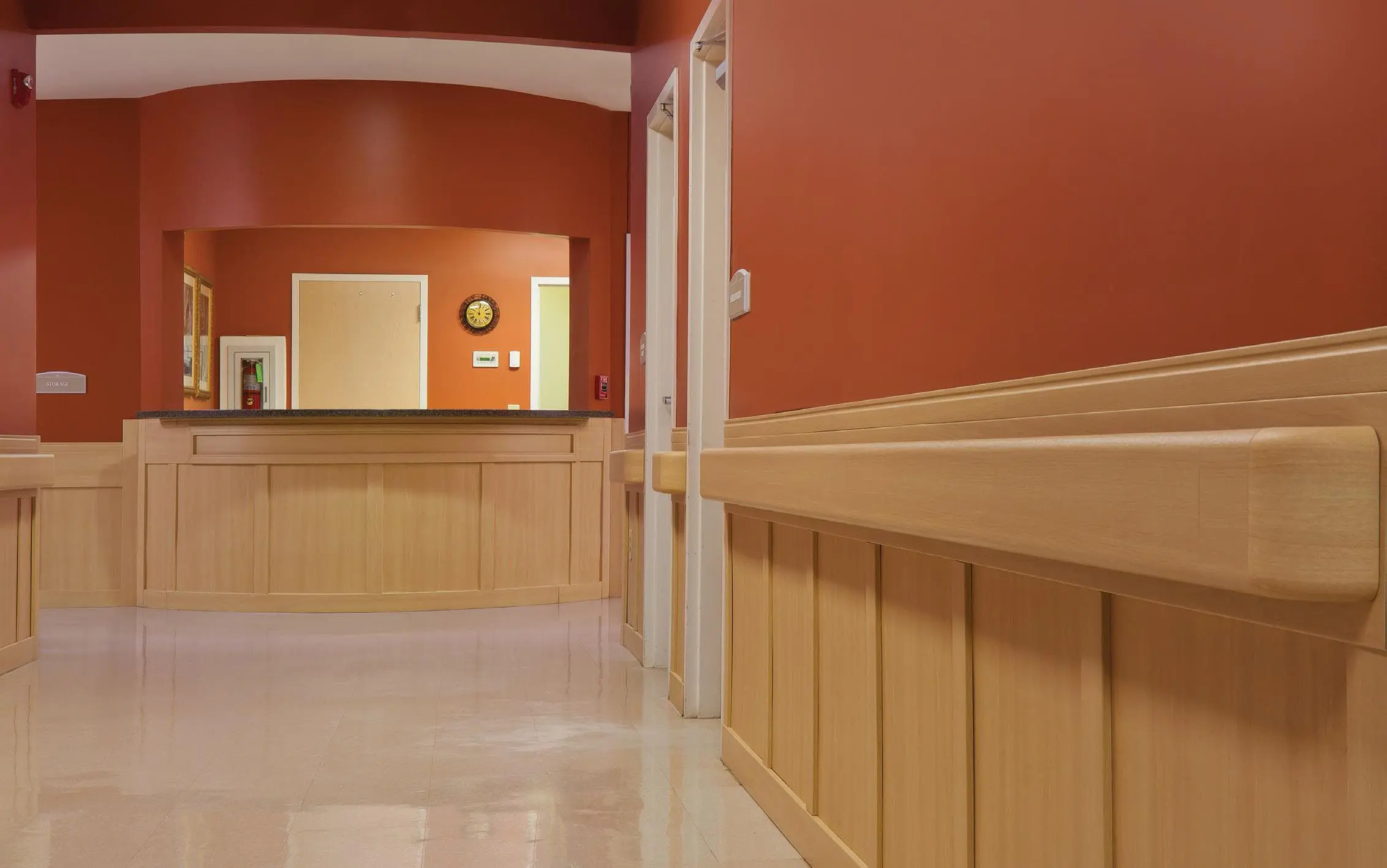 Er kommt vor allem in Krankenhäusern, Einkaufszentren und Schulen zum Einsatz und lässt sich mit Ankerbolzen einfach montieren. Zur Auswahl stehen zahlreiche Standardfarben und Holzdekore, die sich harmonisch in jedes Interieur einfügen.