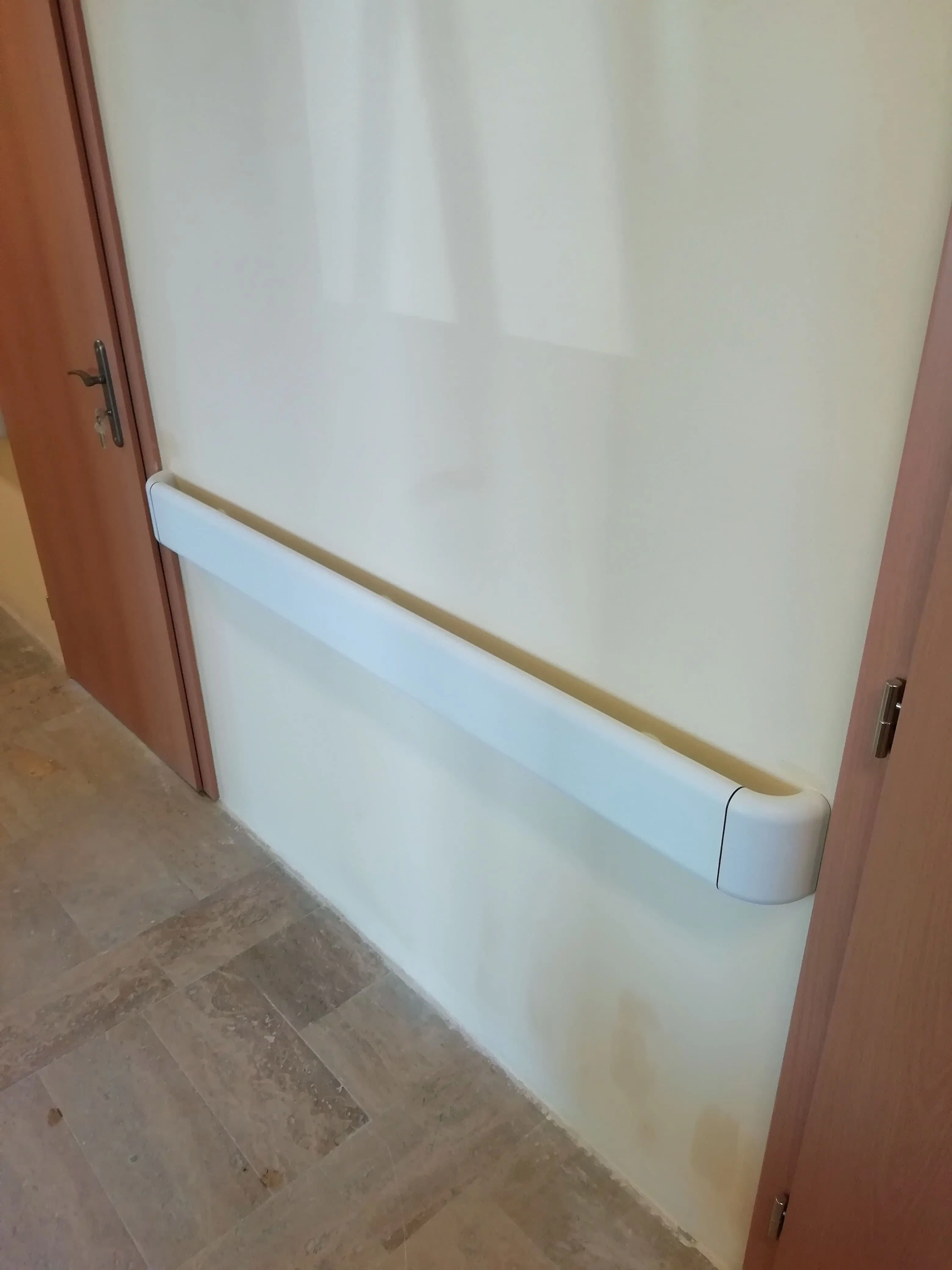 Der Wandgriff Handrail 800 aus PVC-U bietet eine glatte, ergonomisch geformte Oberfläche, die die Mobilität und Selbstständigkeit von Patienten unterstützt.