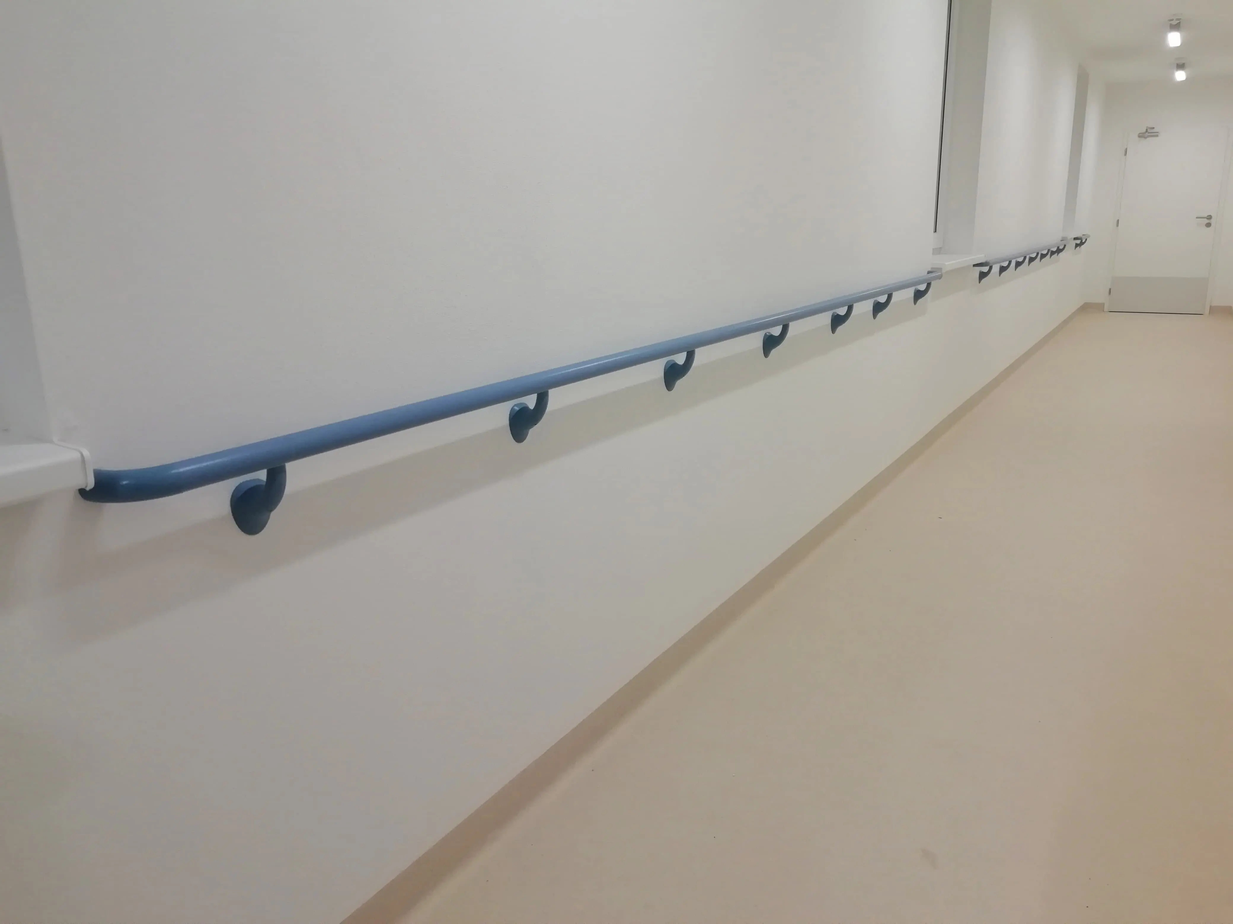 Der Wandschutz wird hauptsächlich in Krankenhausfluren oder Schulen eingesetzt. Er ist feuerbeständig und lässt sich mit Ankerbolzen leicht montieren.