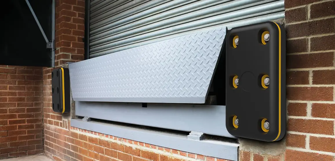 Verwenden Sie die Dock Buffer Weld Plate Galv zusammen mit der Dock Buffer Safety Barrier, um Türen und Rampen beim Erreichen der Laderampe durch Anhänger zu schützen.