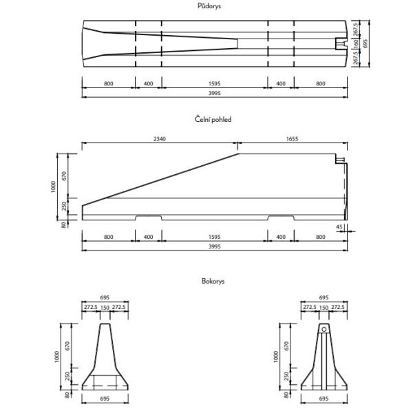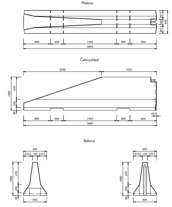 CB-300054_1 | Zweiseitige Betonschutzplanke TYP100 – rechtes Endstück, 4000×695×1000 mm |