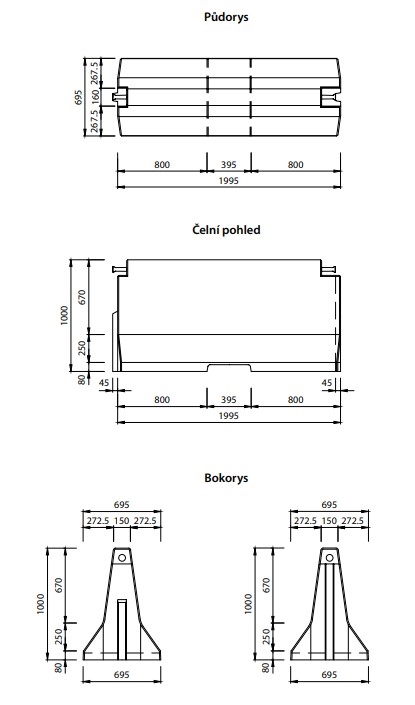 Die zweiseitige Betonschutzplanke TYP80 wird aus hochfestem Porenbeton der Festigkeitsklasse C45/55 gefertigt und erfüllt die Anforderungen der Expositionsklassen XF4, XD3 gemäß EN 206-1.