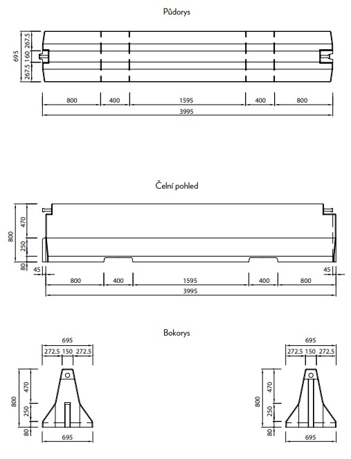 Die zweiseitige Betonschutzplanke TYP80 ist aus hochfestem Porenbeton der Festigkeitsklasse C45/55 hergestellt und erfüllt die Anforderungen der Klasse XF4, XD3 gemäß EN 206-1.