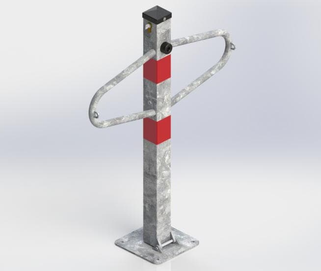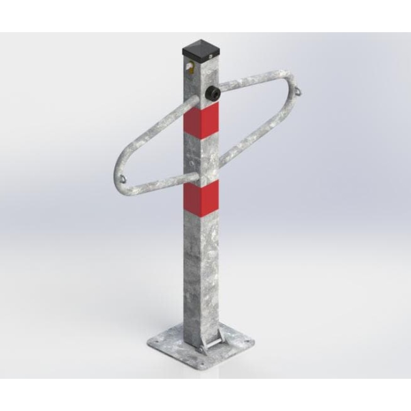 Die klappbare Version wird bequem mit einem Dreikantschlüssel entriegelt. Nach dem Öffnen klappt der Pfosten flach auf den Boden, beim Hochklappen verriegelt er automatisch. Zwei Reflexstreifen machen ihn auch bei Dunkelheit oder schlechter Sicht sofort erkennbar.
