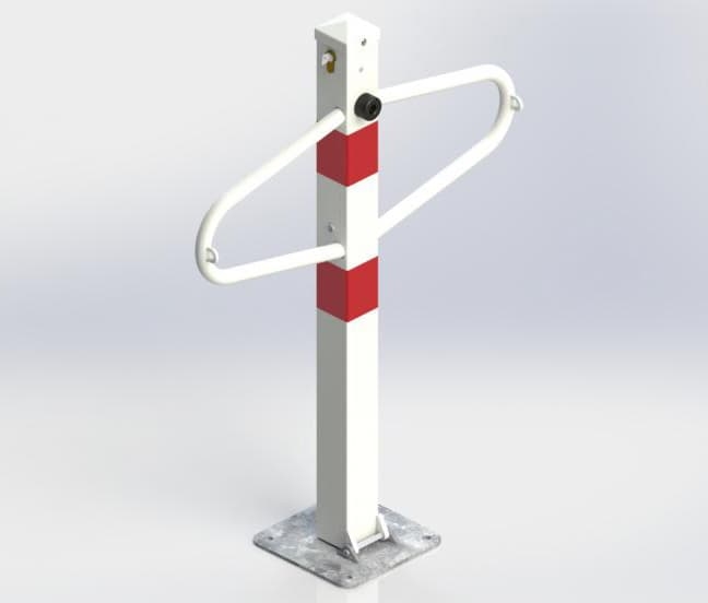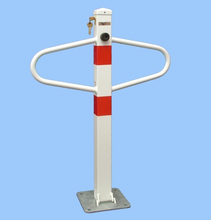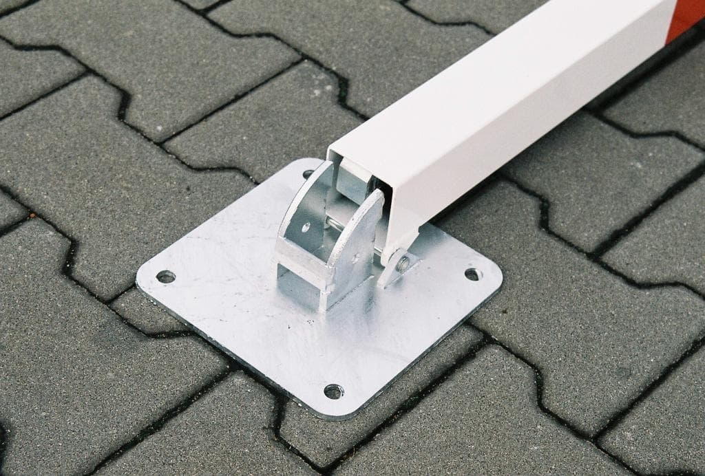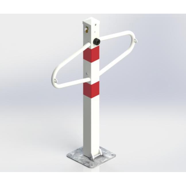 Die klappbare Version wird bequem mit einem Dreikantschlüssel entriegelt. Nach dem Öffnen klappt der Pfosten flach auf den Boden, beim Hochklappen verriegelt er automatisch. Zwei Reflexstreifen machen ihn auch bei Dunkelheit oder schlechter Sicht sofort erkennbar.
