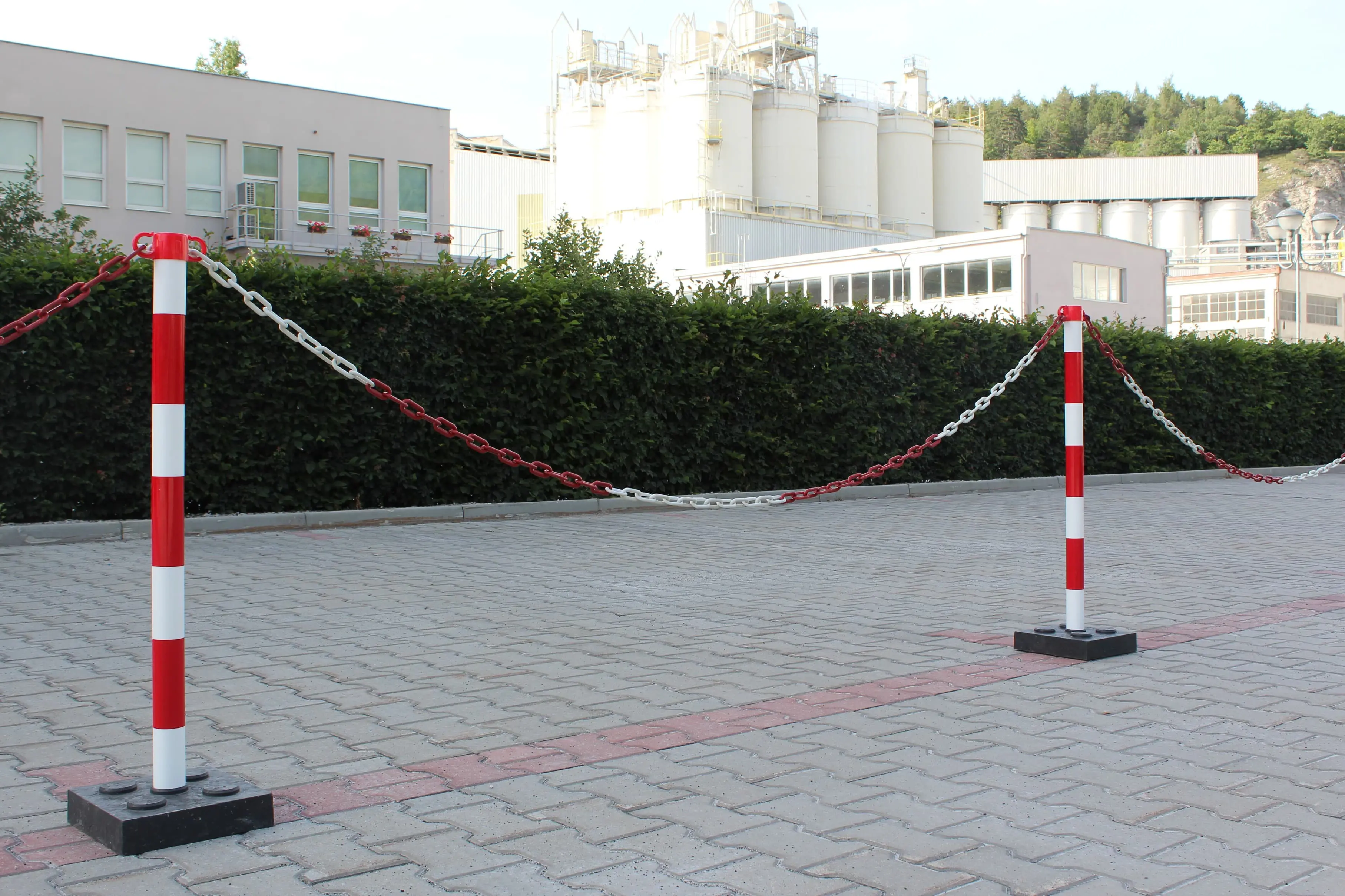 Die 7,5 mm dicke Kunststoffkette ist ein Zubehör für den Economic-Pfosten und dient zur einfachen, kostengünstigen Abgrenzung von Flächen in Produktion, Lager oder auf Parkplätzen.