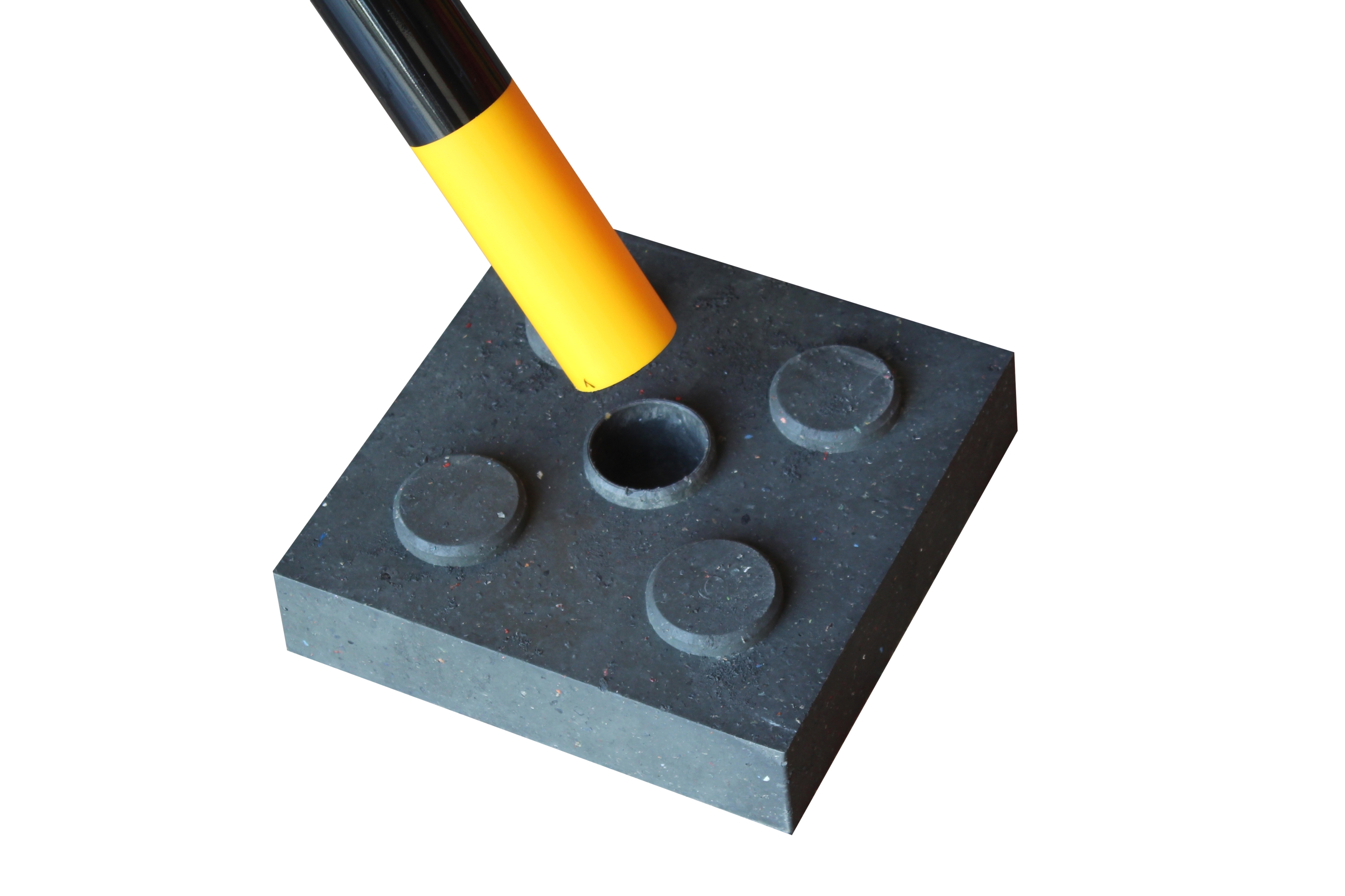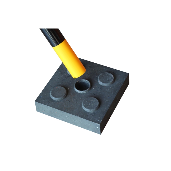 Der eckige Sockel aus recyceltem Gummi verleiht dem Economic-Zaunpfosten zusätzliche Stabilität. In Kombination mit dem Pfosten eignet er sich ideal zur Abgrenzung von Parkplätzen, Gebäudebereichen oder Lagerflächen.