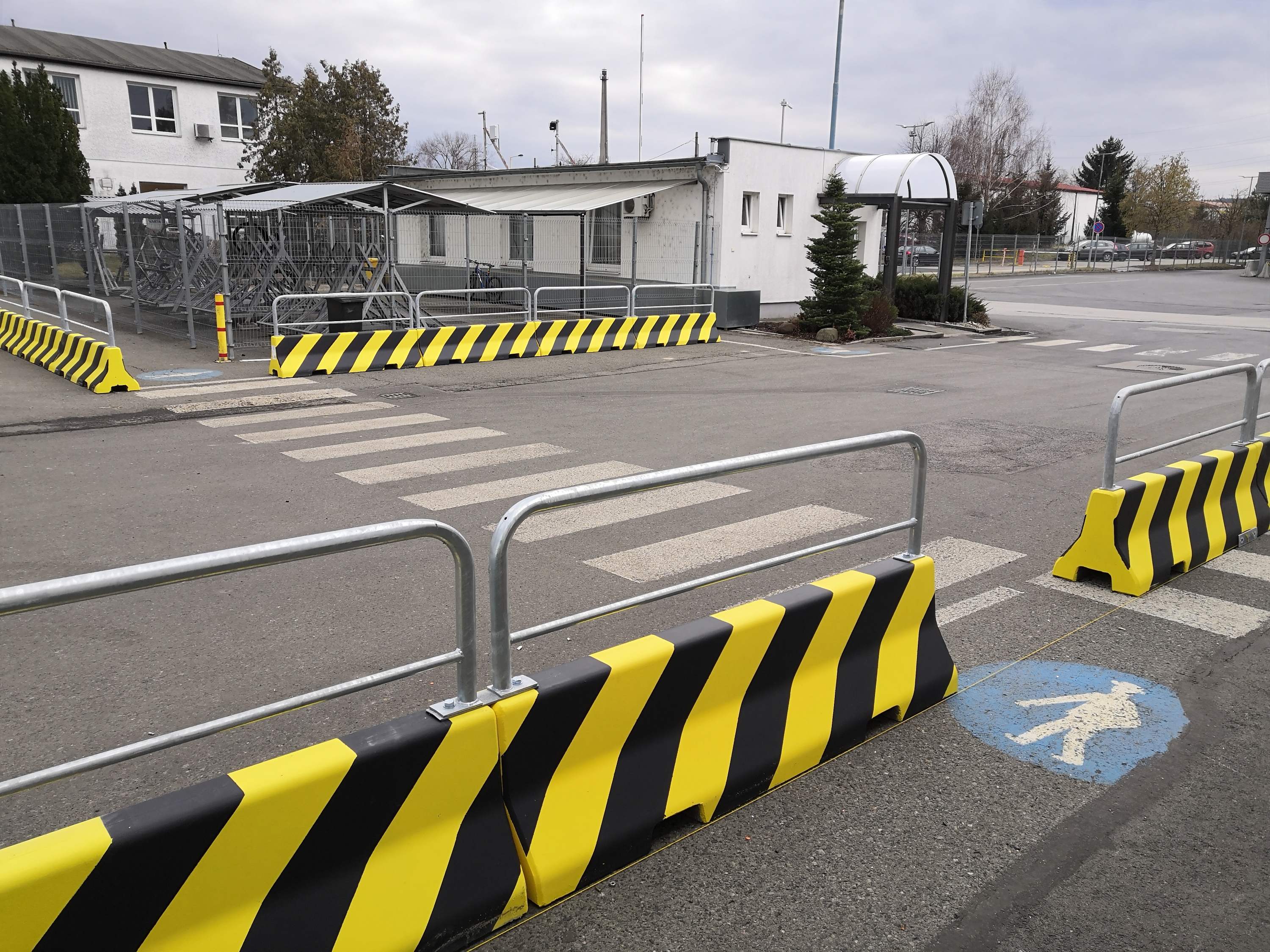 Für eine bessere Sichtbarkeit bei schlechten Lichtverhältnissen ist es mit einem gelb-schwarz gestreiften Geländer kombinierbar.