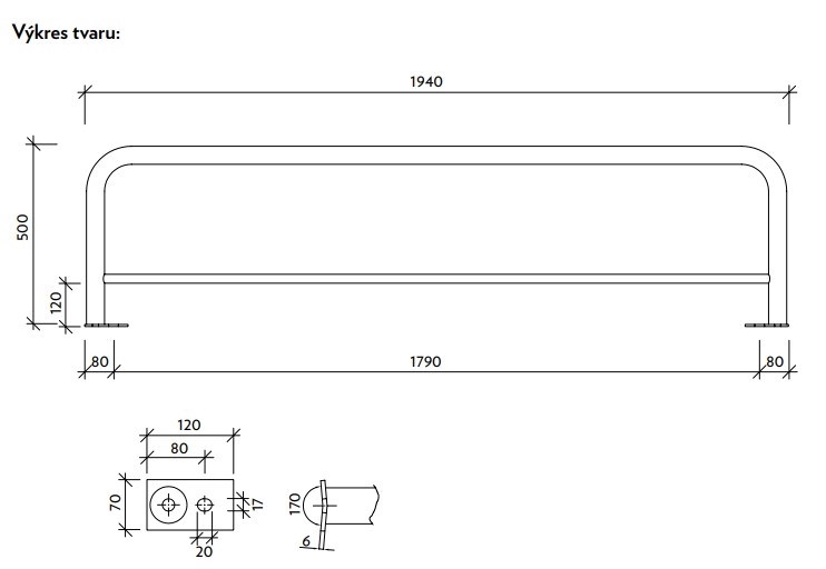 CB-MSVZ1M | Verzinktes Geländer für Betonschutzplanken – 1000×500 mm |