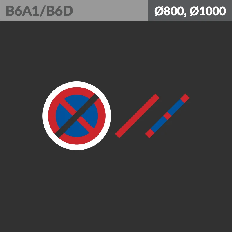 OR-PTC0226_B6s | Vorgefertigte Straßenmarkierung "Eingeschränktes/Absolutes Haltverbot" – Thermoplast, rot-blau, D.850 mm |