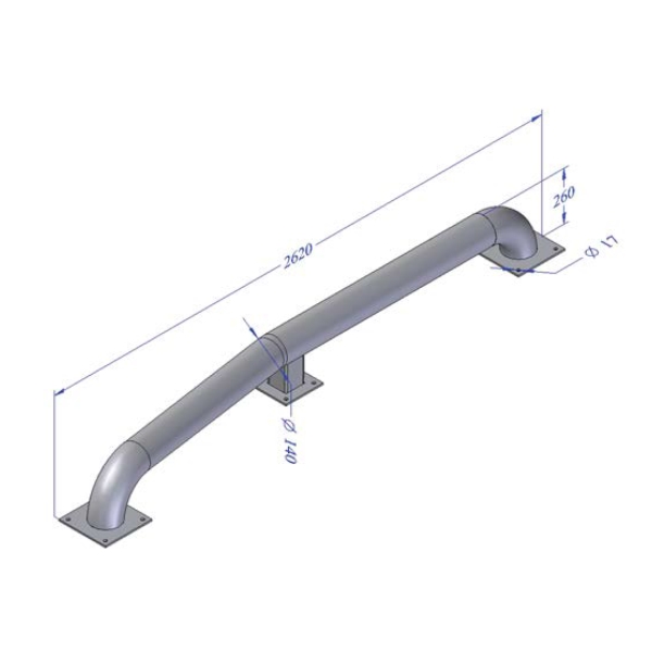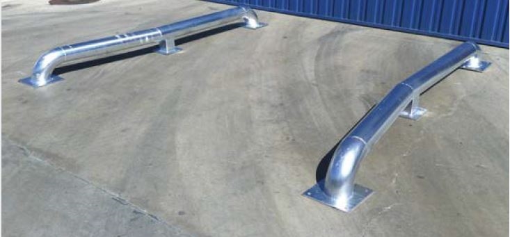Die Radleitboards werden paarweise geliefert, sind jedoch auch einzeln in Rechts- oder Linksausführung erhältlich. Das Leitrohr besteht aus 3 mm starkem Stahl, ist 2.620 mm lang und gebogen. Mit einem Abstand von 260 mm erleichtert es die exakte Anfahrt an die Rampe.