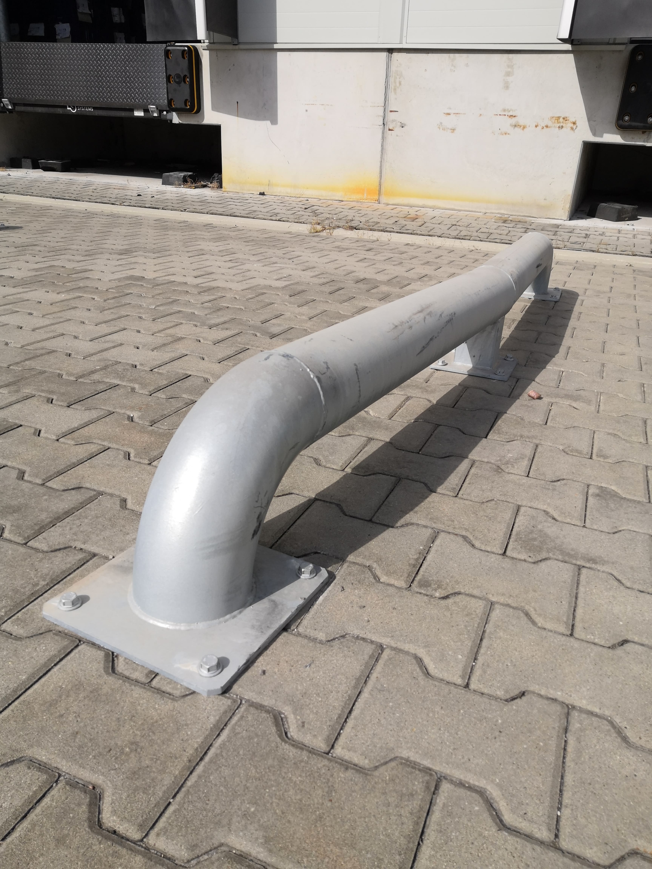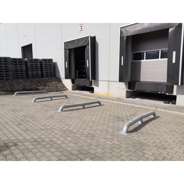 Die Radlenkung wird mittig an Laderampen, Brücken oder Hallentoren montiert. Sie erleichtert Lkw-Fahrern das Rückwärtsfahren, erhöht die Sicherheit an Be- und Entladestellen und schützt die Umgebung von Rampen und Toren.