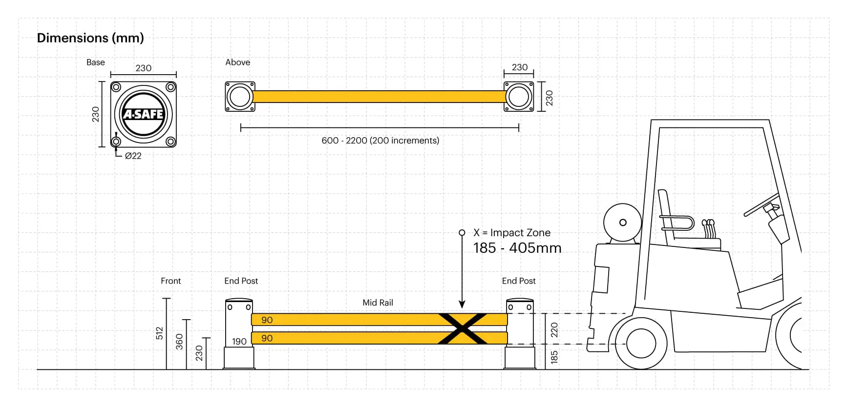 DerDoppeltyp hat, wie die einfache Ausführung, eine Anzahl von 10 cm langen Abstandsstücken. Dies bietet die Möglichkeit, die Länge der Barriere mit einem kleinen Überhang über die Regalständer zu variieren. Der doppelte Schwenkvorhang an den Pfosten verteilt die Aufprallkräfte und schützt die Pfostenstruktur selbst vor Stößen von Metallpaletten und scharfen Gabeln des VZV. Die doppelte Ummantelung ist besonders nützlich in Betrieben mit begrenztem Platzangebot oder einer hohen Bewegungsfrequenz der Umschlaggeräte. Um zu verhindern, dass Gabelstapler in geringer Höhe auf den Boden aufschlagen, empfehlen wir die Kombination mit einem ForkGuard.