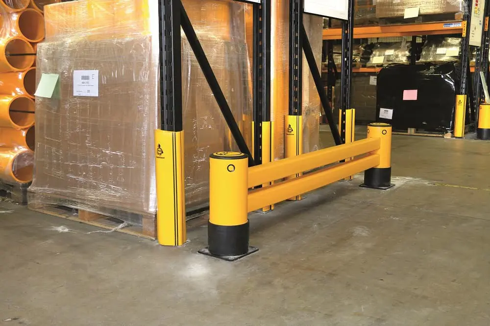DieeFlex Double RackEnd Barrier mit doppelter Ummantelung wurde entwickelt, um die Stirnseiten von Palettenregalen vor Stößen durch Flurförderzeuge zu schützen. Diese Art des Schutzes ist für Lager mit mittlerer Verkehrsintensität geeignet .