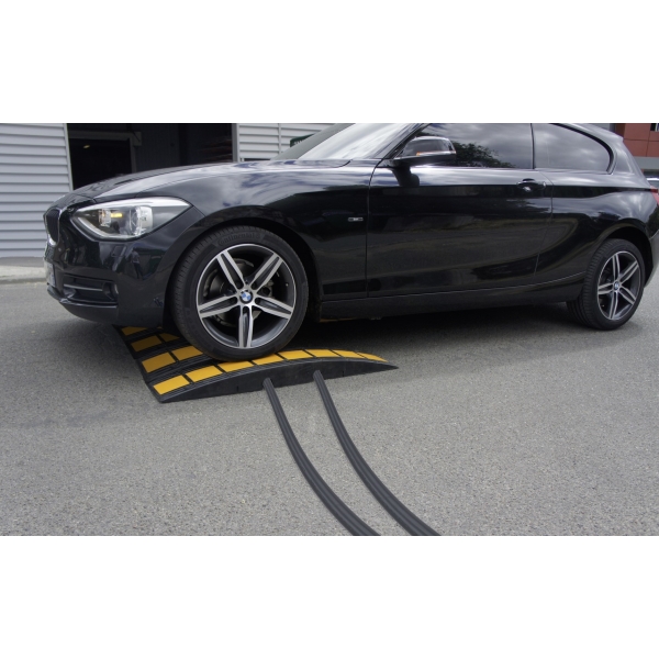 Der Retarder mit Kabelübergang ermöglicht sicheren Kabelschutz und sorgt für eine gefahrlose Überquerung schwerer Geräte auf Straßen, Parkplätzen, Baustellen, an Gebäudeeingängen oder bei Veranstaltungen.