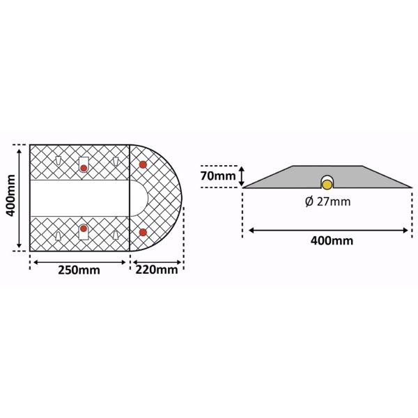 Retarder – Kabelbrücke 30 km/h, 20 t, 2er-Set – 250×350×50 mm, schwarz/gelb